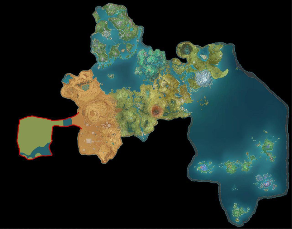 Новый регион Натлан располагается на другом континенте (т.е. не будет продолжением Сумеру) и отделён океаном. Как отмечается, он «по размеру примерно как карта [Сумеру] в 3.1», а пустыни не будет.