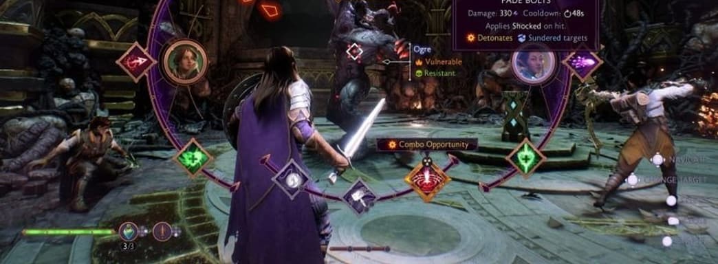 Индивидуальность найдёт отражение и в бою. Контроль над членами отряда сильно ограничен и зависит от выбора одного из нескольких умений на колесе выбора. Для сравнения: в Inquisition можно было управлять компаньоном даже вне боя, а в Origins позволяли самостоятельно «программировать» ИИ союзников.