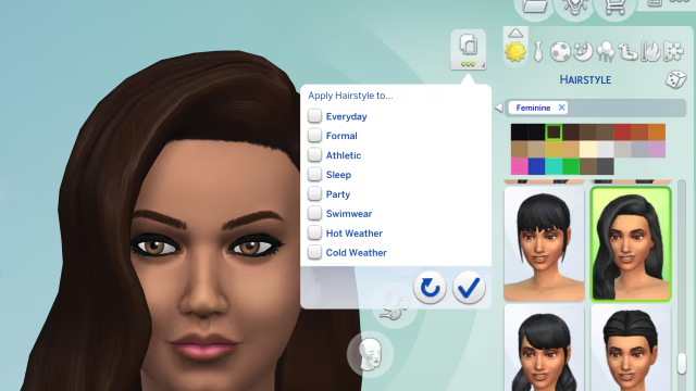 Появилась кнопка «Носить со всеми нарядами» (применить предмет ко всем категориям). Она добавляет выбранный предмет в наряды симов. Она не приводит к удалению частей наряда, а лишь добавляет или заменяет их.
