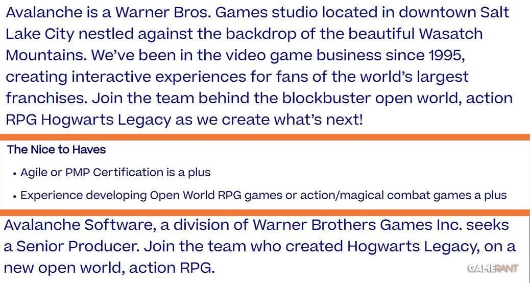 Предложение о работе касается новой ролевой игры с открытым миром и элементами магического боя. Упоминание о желаемом опыте разработки игр подобного рода подкрепляет гипотезу о потенциальном сиквеле Hogwarts Legacy.