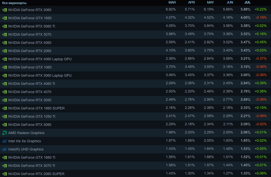 - NVIDIA GeForce RTX 3060 — 5.88%