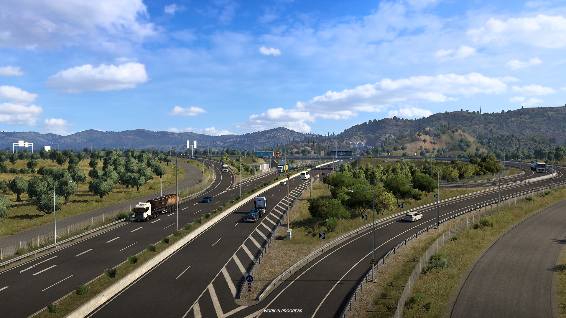 На этот раз в центре внимания оказалась дорожная сеть Греции, которая в обозримом будущем появится в Euro Truck Simulator 2. Всего разработчики воссоздали восемь крупных автомагистралей A1, A2, A3, A4, A5, A6, A7 и A8, которые пересекают страну. Важным узлом сети станет паром Игуменица.