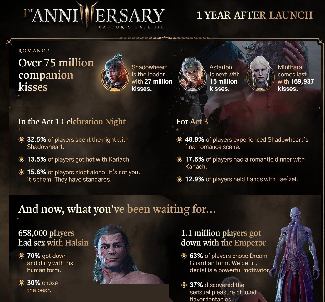 У Baldur's Gate 3 первая годовщина 1.0. Событие отмечают как фанаты, так и сами разработчики.