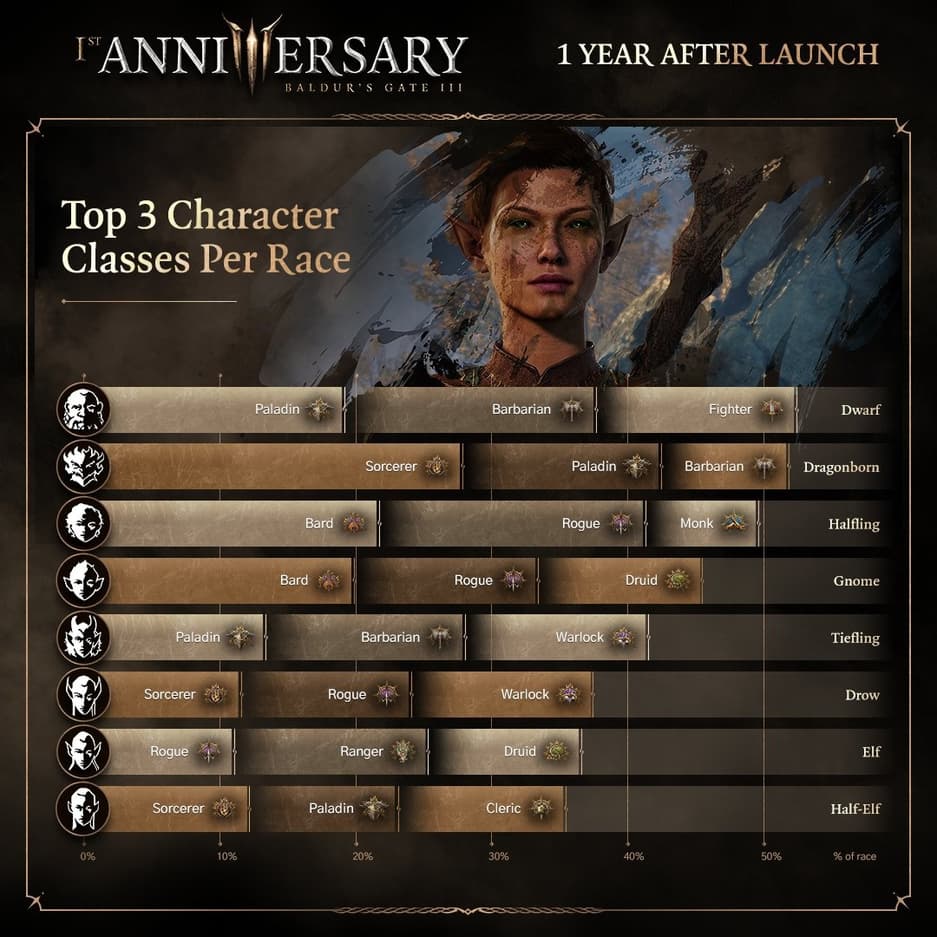 Также поступила статистика о приключениях игроков в Baldur's Gate 3: