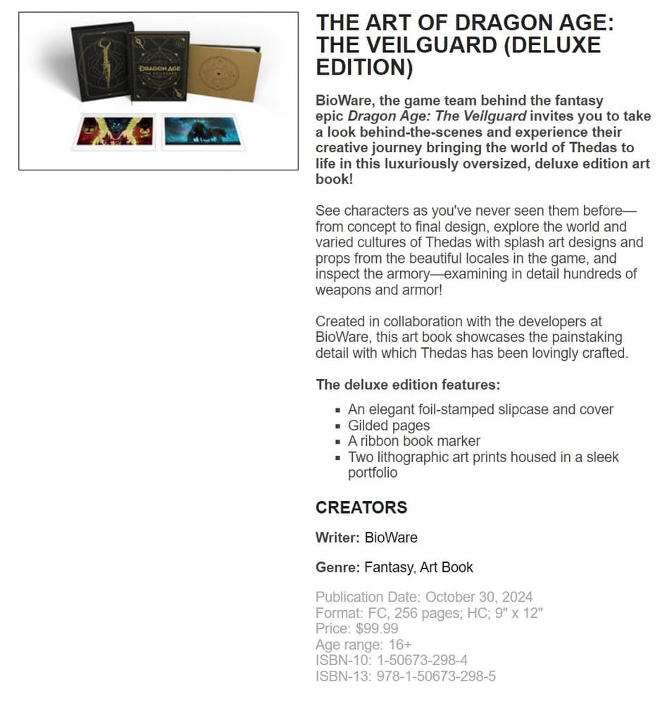Недавняя утечка информации раскрывает конкретную дату. Компания Dark Horse, которая издаёт комиксы и специальные артбуки, создала страницу, на которой представлен артбук Dragon Age. Дата выхода игры назначена на 30 октября 2024 года.