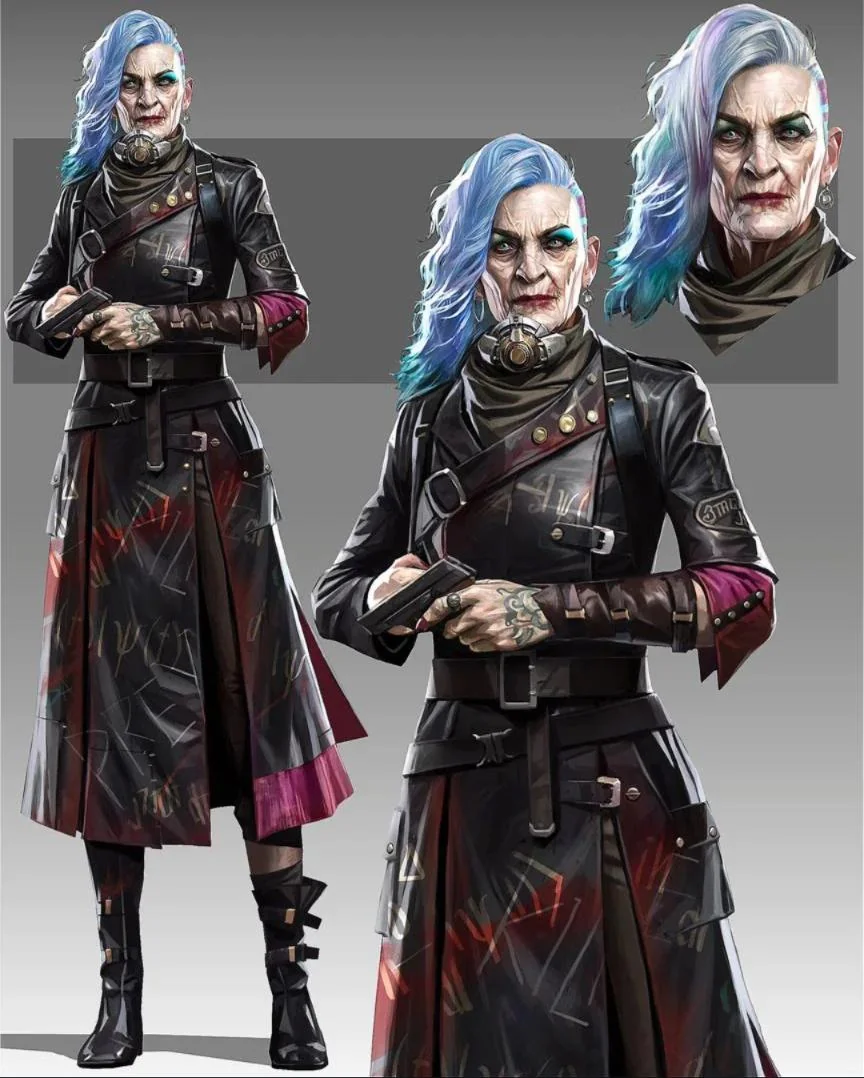 Некоторые в шутку называют этот концепт «бабушка Джинкс» (Джинкс — имя героини из вселенной League of Legends, про которую напоминает этот арт).
