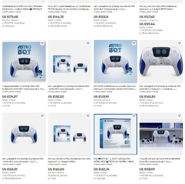 Контроллеры Astro Bot заполонили eBay, средняя цена в объявлениях колеблется в районе 150 долларов, что почти в два раза выше цены, изначально установленной Sony.