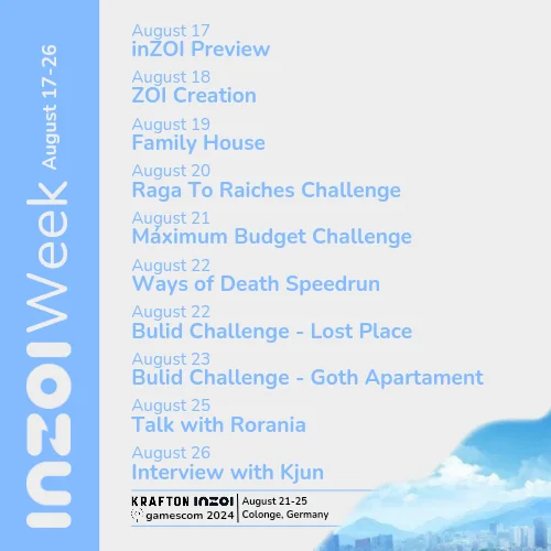inZOI участвует в Gamescom 2024 и у команды большие планы по продвижению проекта — в ближайшие дни будут превью (17 августа), некие соревнования по строительству и не только.