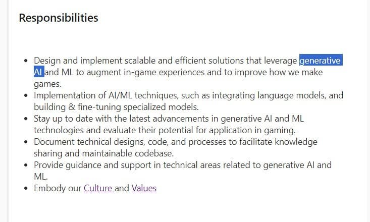 В свежей вакансии старшего инженера по искусственному интеллекту в 343 Industries говорится о поиске сотрудника, который будет работать над играми с генеративным ИИ.