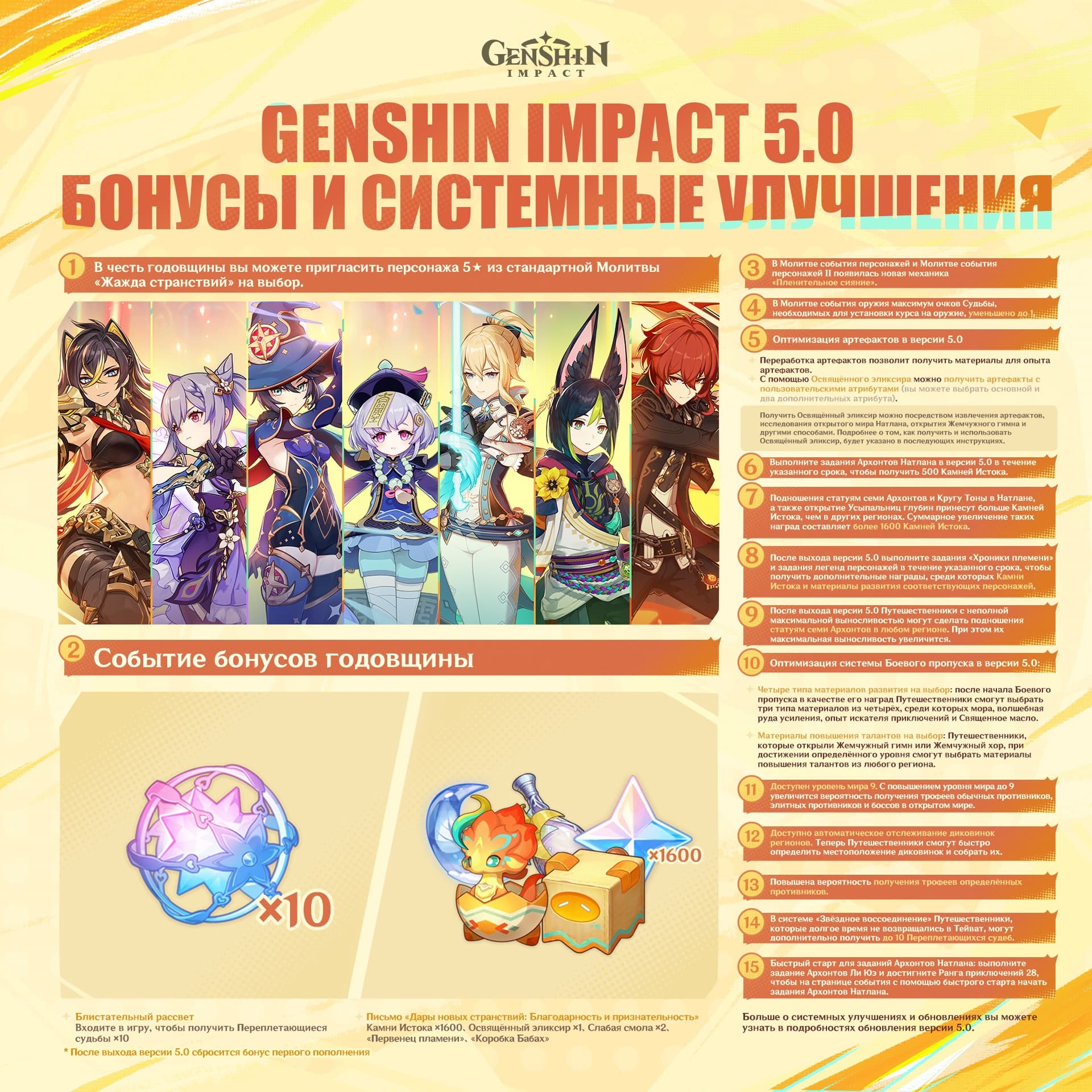 Релиз обновления 5.0 для Genshin Impact ожидается 28 августа 2024 года.