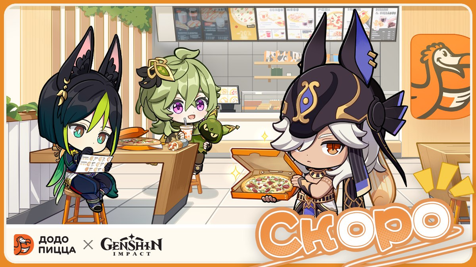 Создатели Genshin Impact анонсировал новый коллаб в России с сетью ресторанов быстрого питания «Додо Пицца». У miHoYo (HoYoverse) уже был опыт сотрудничества с «Додо Пицца», тогда это была акция с Honkai Star Rail, в ходе которой ценители могли перекусить и заполучить в коллекцию памятные подарки.