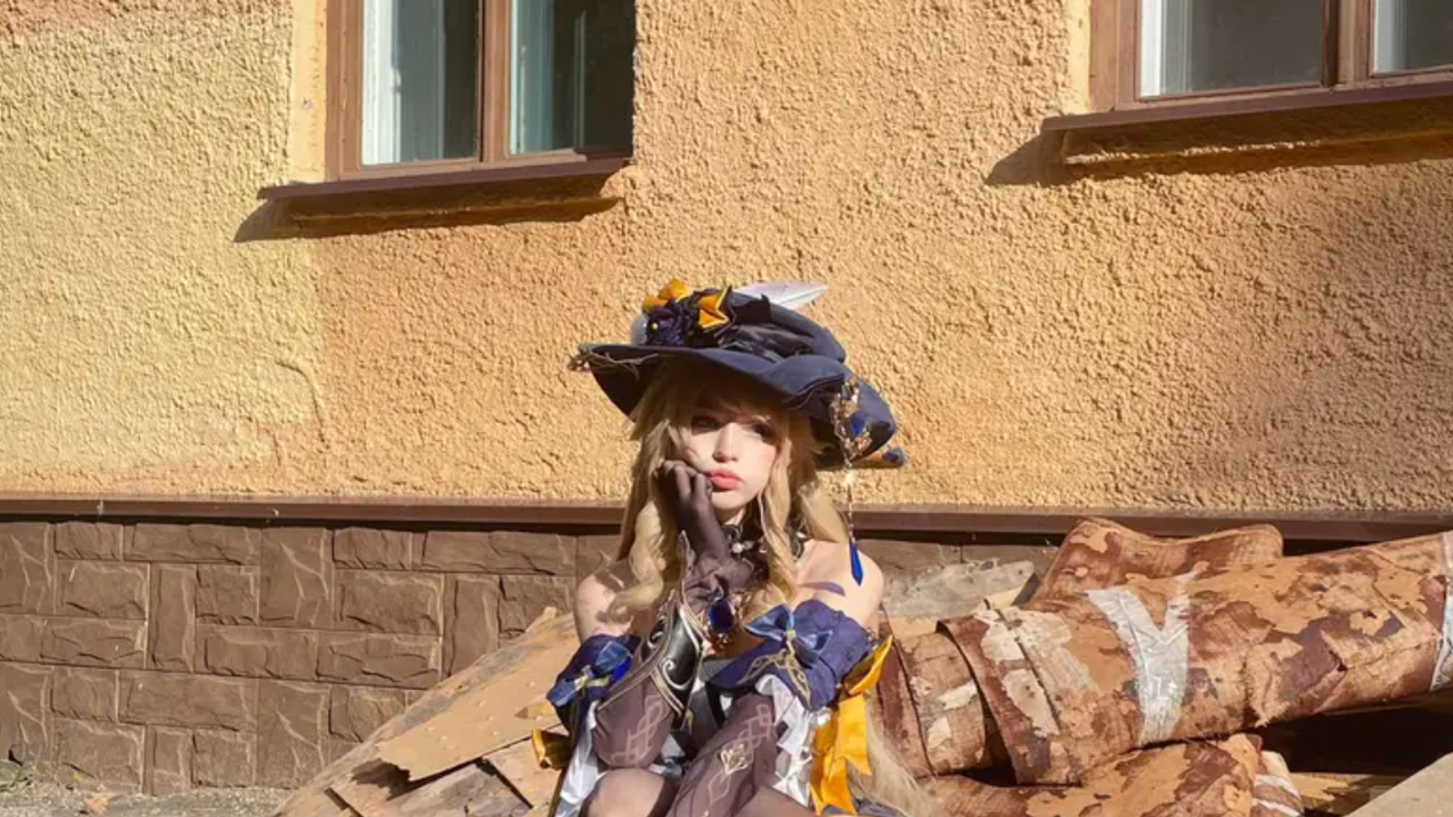 tenletters поделилась с участники сообщества Genshin Impact фотографиями косплея Навии — пятизвёздочной гео-героини, которая из Фонтейна прибыла в Россию и явно оценила местные скамейки: