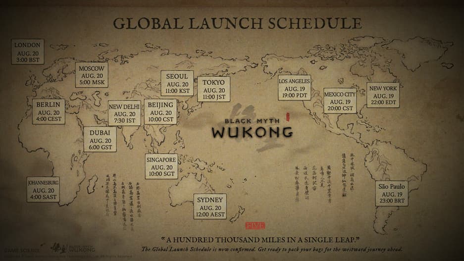 Black Myth: Wukong станет доступна для игры на PS5 и ПК в 5:00 по московскому времени 20 августа 2024 года».
