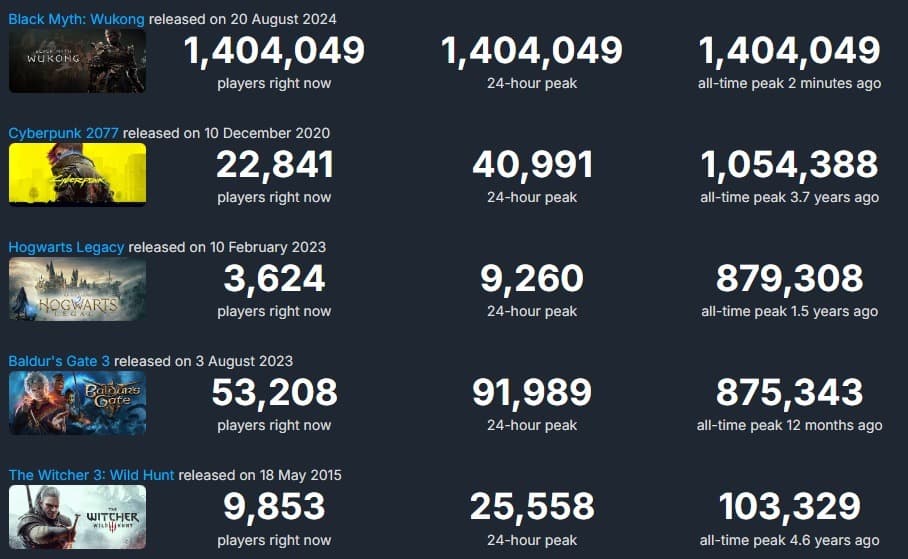 На момент публикации заметки (20 августа в 10 утра МСК), в Black Myth: Wukong играют более 1,4 миллиона игроков в Steam, и этот показатель постоянно растёт. Китайская студия уже может похвастаться образцовым релизом, и нет сомнений, что дальше будет только лучше - к веселью присоединится больше игроков.