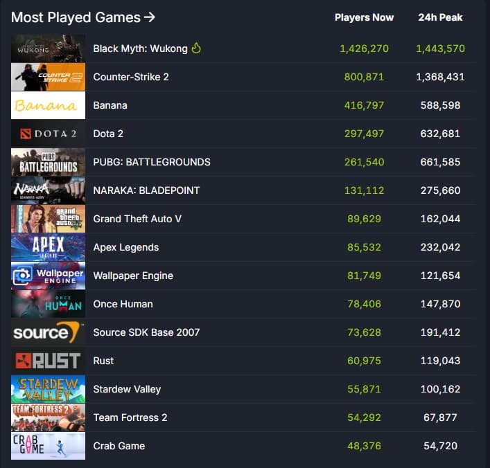 Black Myth: Wukong пленных не берёт и демонстрирует блестящий старт в Steam уже в день релиза.