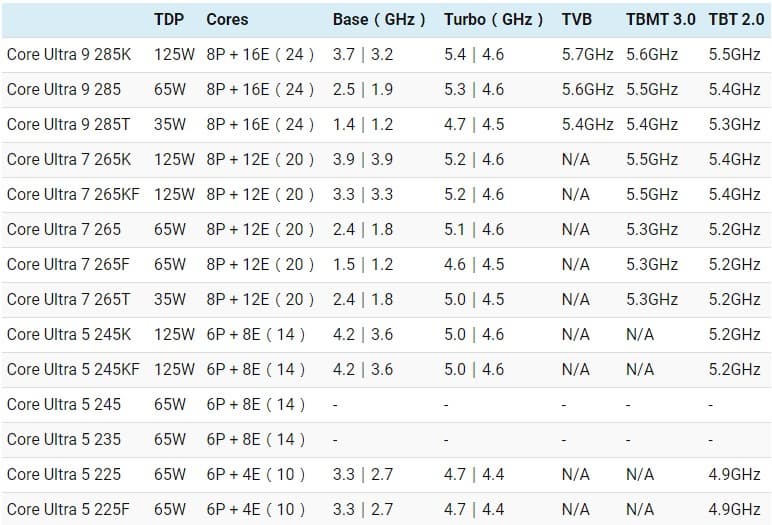 Процессоры Core Ultra 200 основаны на новой архитектуре Lion Cove P-Core и Skymont E-Core. Чипы состоят из четырех модулей: Compute Tile, SOC Tile, IO Tile и Graphics Tile. Графическая архитектура названа Alchemist Xe-LPG. Максимальная тактовая частота топовой модели (Core Ultra 9 285K) увеличится до 5,7 ГГц. Хотя предельные значения TDP останутся на уровне 125 Вт (PL1) и 253 Вт (PL2), фактическое энергопотребление ожидается на 100 Вт, ниже по сравнению с текущим поколением процессоров Raptor Lake.