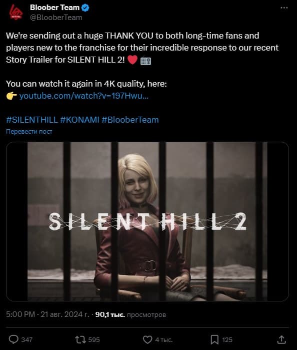 Bloober Team выразила искреннюю благодарность фанатам за невероятную реакцию на недавно представленный сюжетный трейлер Silent Hill 2 Remake.