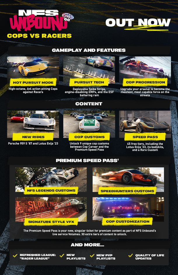 С полным списком изменений обновления «Vol. 8: Cops vs. Racers» для Need for Speed Unbound можно ознакомиться по следующей ссылке.