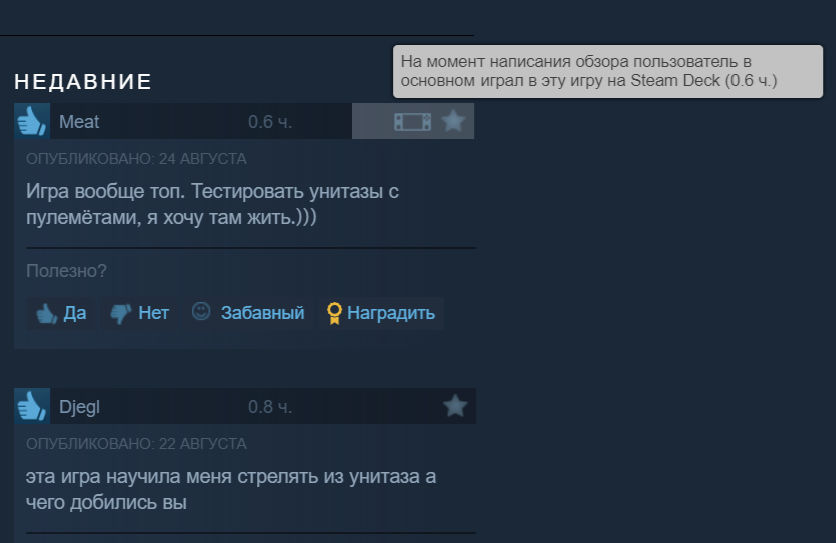 «...Мы добавили новую функцию в Steam, которая показывает, когда отзыв был написан кем-то, кто играл в основном на Steam Deck», т.е. будет учитываться игровое время на портативном ПК.