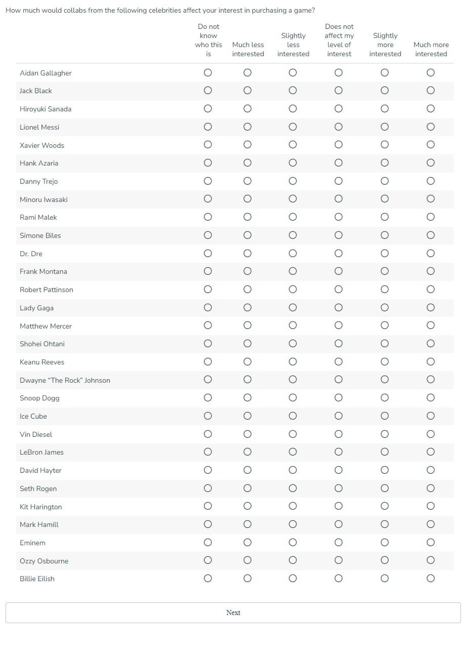 Недавно Sega разослала некоторым фанатам опрос, который может затронуть такие бренды, как Crazy Taxi, Persona и Like a Dragon. Компания хотела выяснить, влияют ли популярные личности на восприятие игры и хотели бы игроки, чтобы они появлялись и в будущих играх. Интервьюеры подготовили список имена: Киану Ривз, Хироюки Санада, Джек Блэк, Билли Айлиш, Леди Гага, Оззи Осборн, Лионель Месси, Ксавье Вудс.