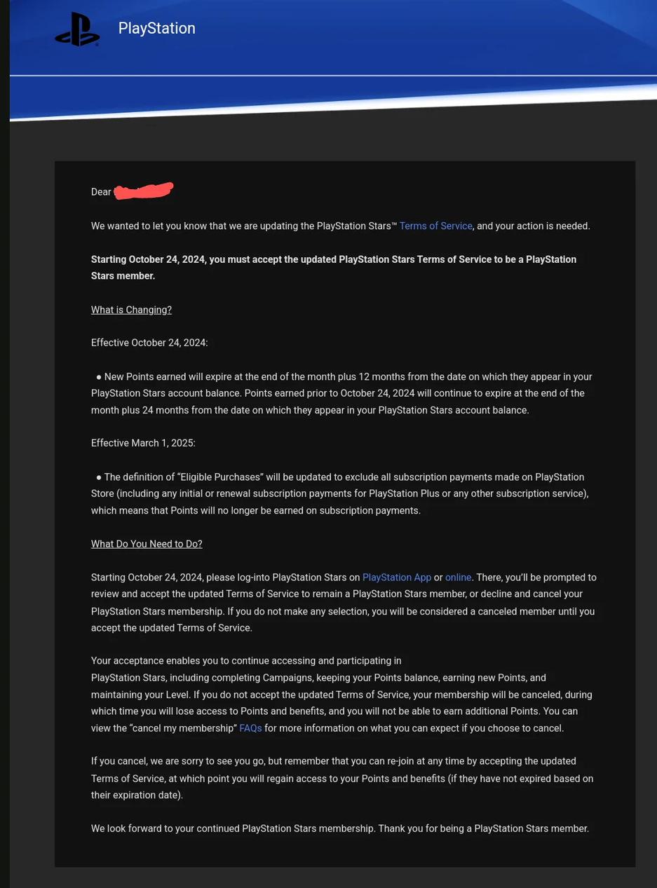 В сообществе PlayStation Stars опубликовали скриншот письма, который Sony рассылает участникам программы лояльности.