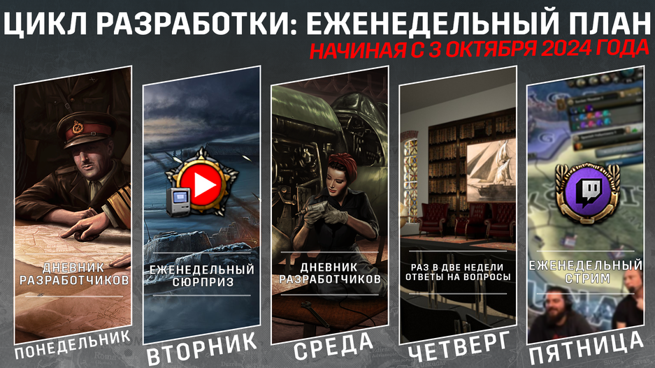 Как пояснили, команда Hearts of Iron 4 «усердно работает над грядущим дополнением с конца прошлого года». Представили дорожную карту: начиная с 3 октября текущего года будут активно делиться материалами — сделали выводы из прошлого опыта и попробуют скорректировать формат продвижения DLC: