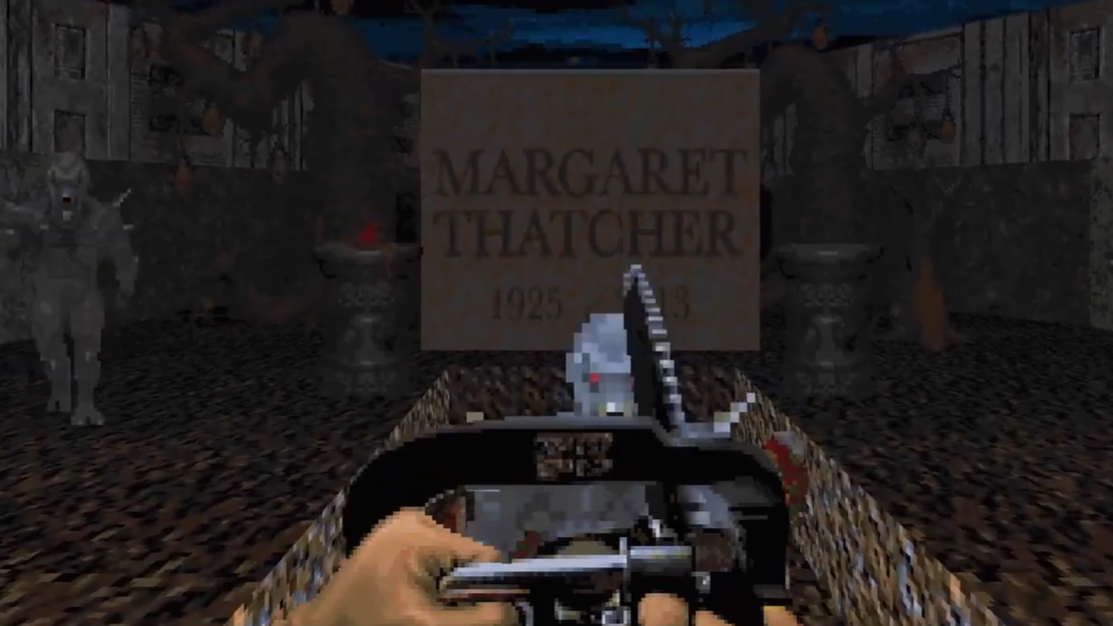 Энтузиасты несколько лет назад представили для культового шутера DOOM модификацию с десятым кругом ада. Тогда главным злодеем решили сделать «железную леди» Маргарет Тэтчер.