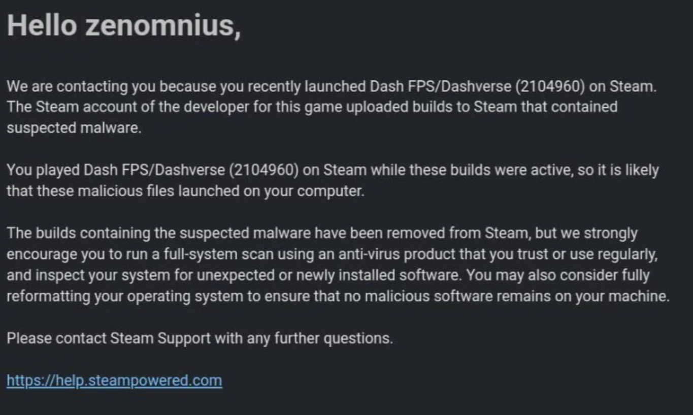 Недавно из Steam экстренно удалили проект Dash FPS (Dashverse), релиз которого состоялся несколько лет назад. Поводом послужили вредоносные действия разработчики.