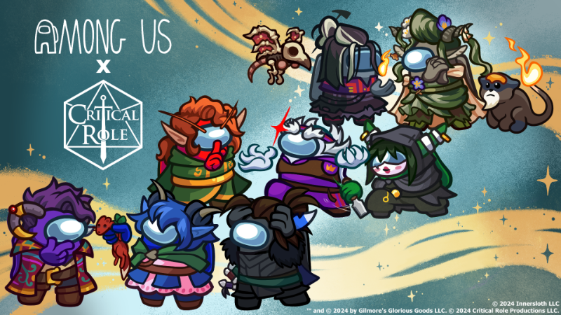 Во-первых, Among Us получила коллаб с Critical Role — американским веб-сериалом, в рамках которого профессиональные актёры озвучивания играют в настольные ролевые игры. Показали подборку образов, а также отметили, что в набор входят композиции Vox Machina, The Mighty Nein и Bells Hells. Он будет доступен в продаже до 12 ноября 2024 года.