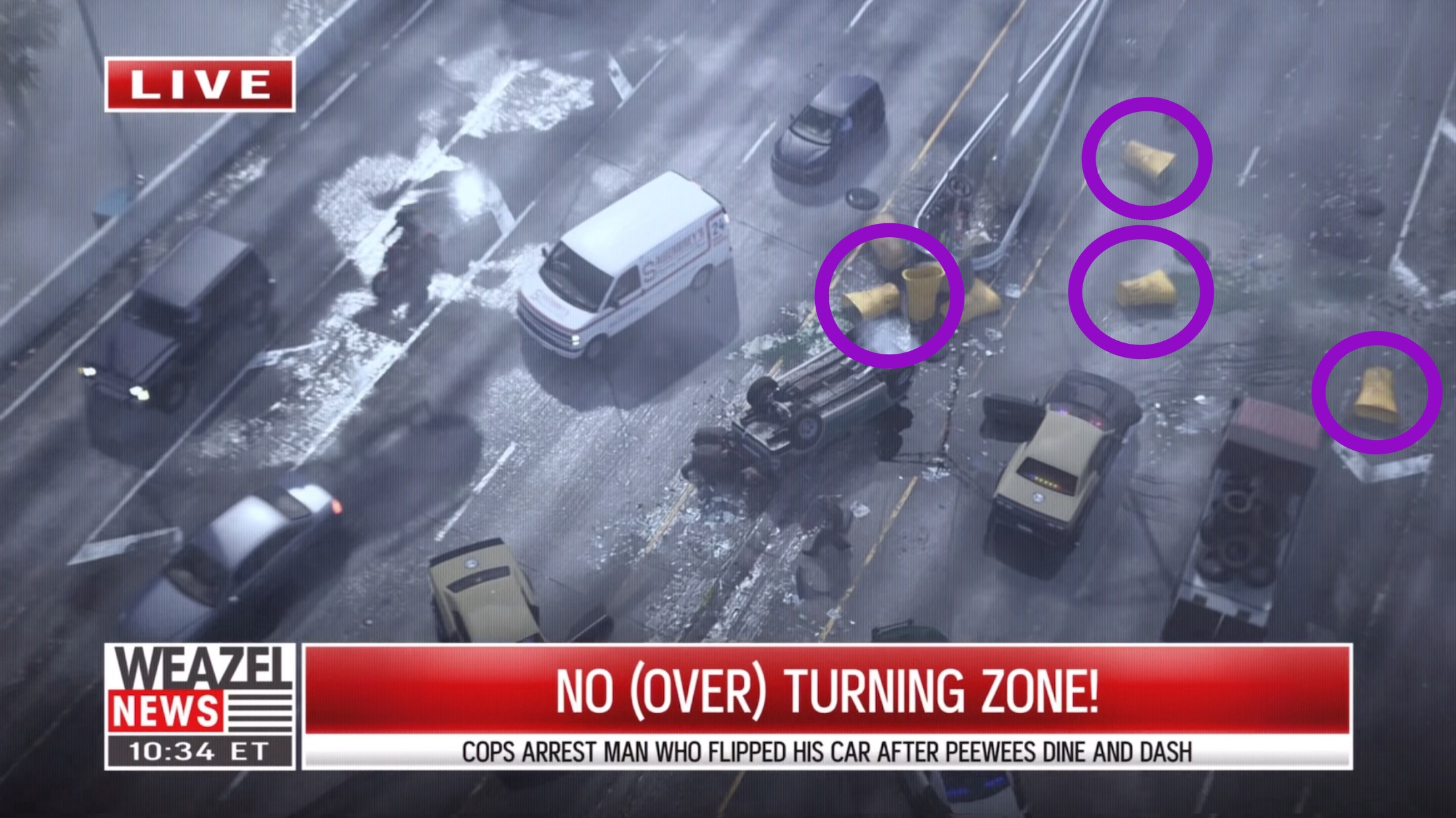 Бочки, сбитые автомобилем, имеют «дублированный» вид повреждений.
