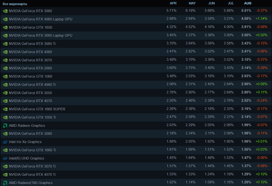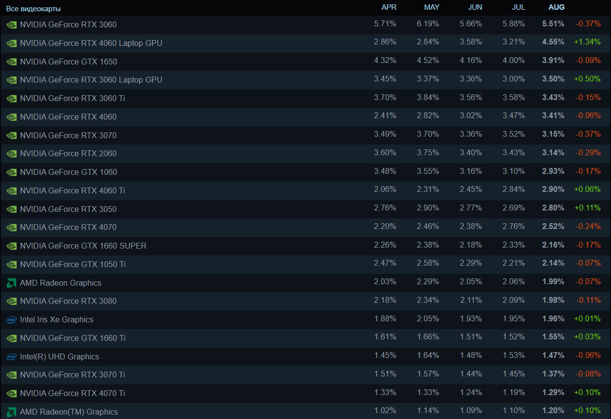 - NVIDIA GeForce RTX 3060 — 5.51%
