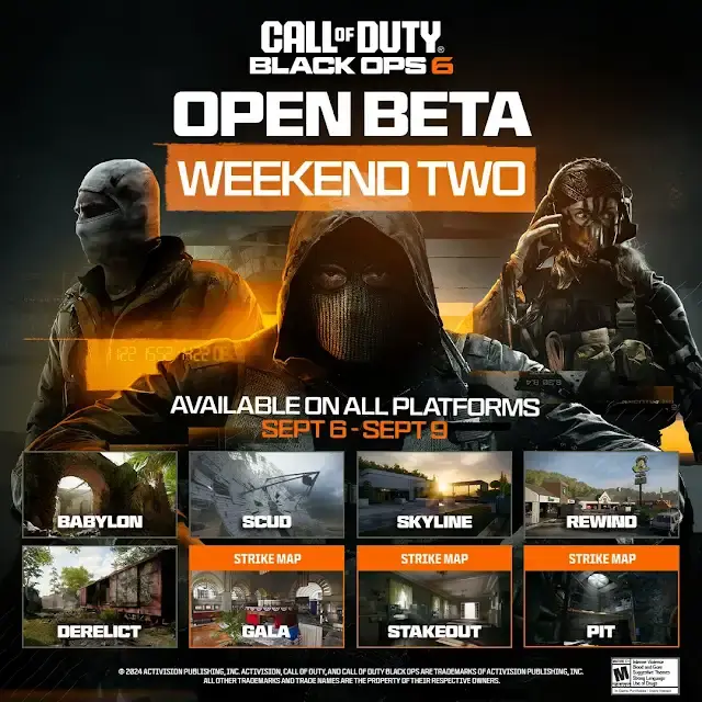 6 сентября на персональных компьютерах, а также консолях двух поколений PlayStation и Xbox стартует открытая бета Black Ops 6. В игру будут добавлены режимы Face Off Team Deathmatch и Face Off Kill Confirmed, карты для матчей в формате 6 на 6 Pit и Gala и карта Babylon для основного многопользовательского режима.