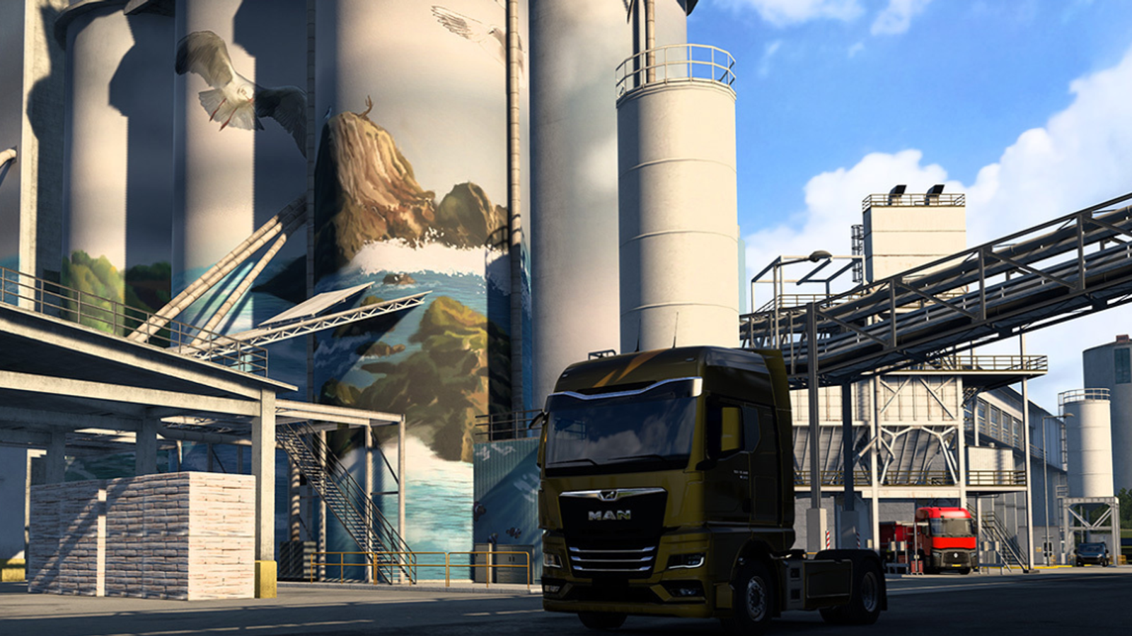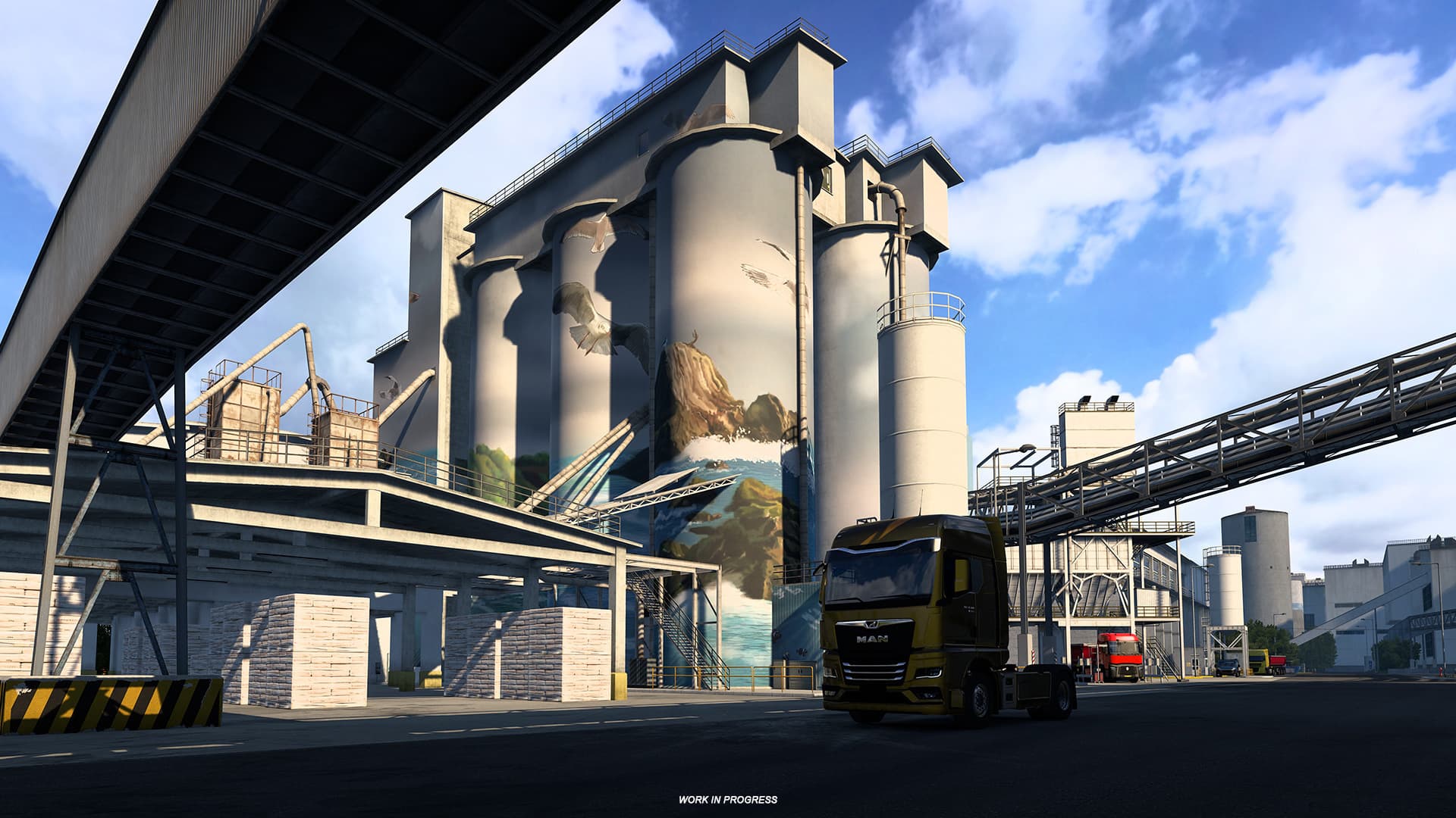 Воссоздание цементного завода для ETS 2 включает и декоративные элементы — многие здания завода украшены художественной росписью, их можно будет увидеть и в игре.