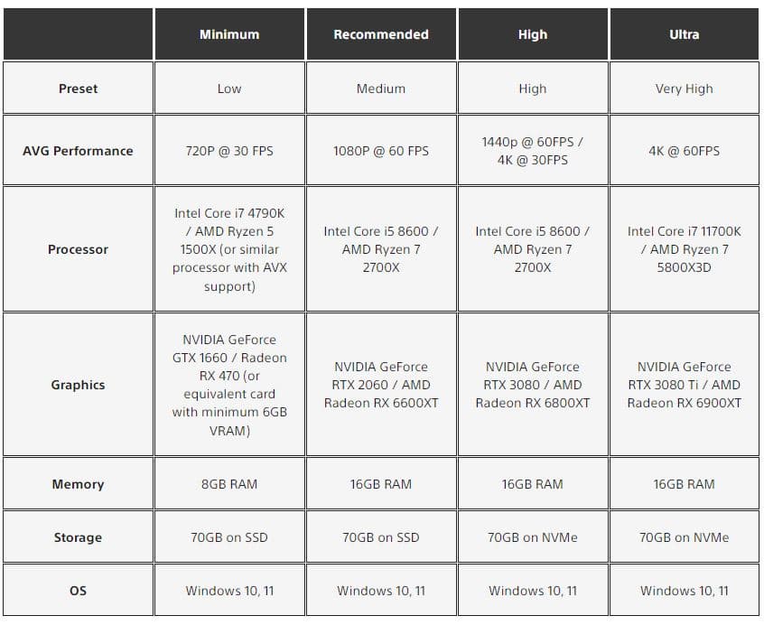 Для тех, кто хочет поиграть просто ради сюжета, а не широких диагоналей и четких текстур, хватит i7 4790k и GTX 1660.