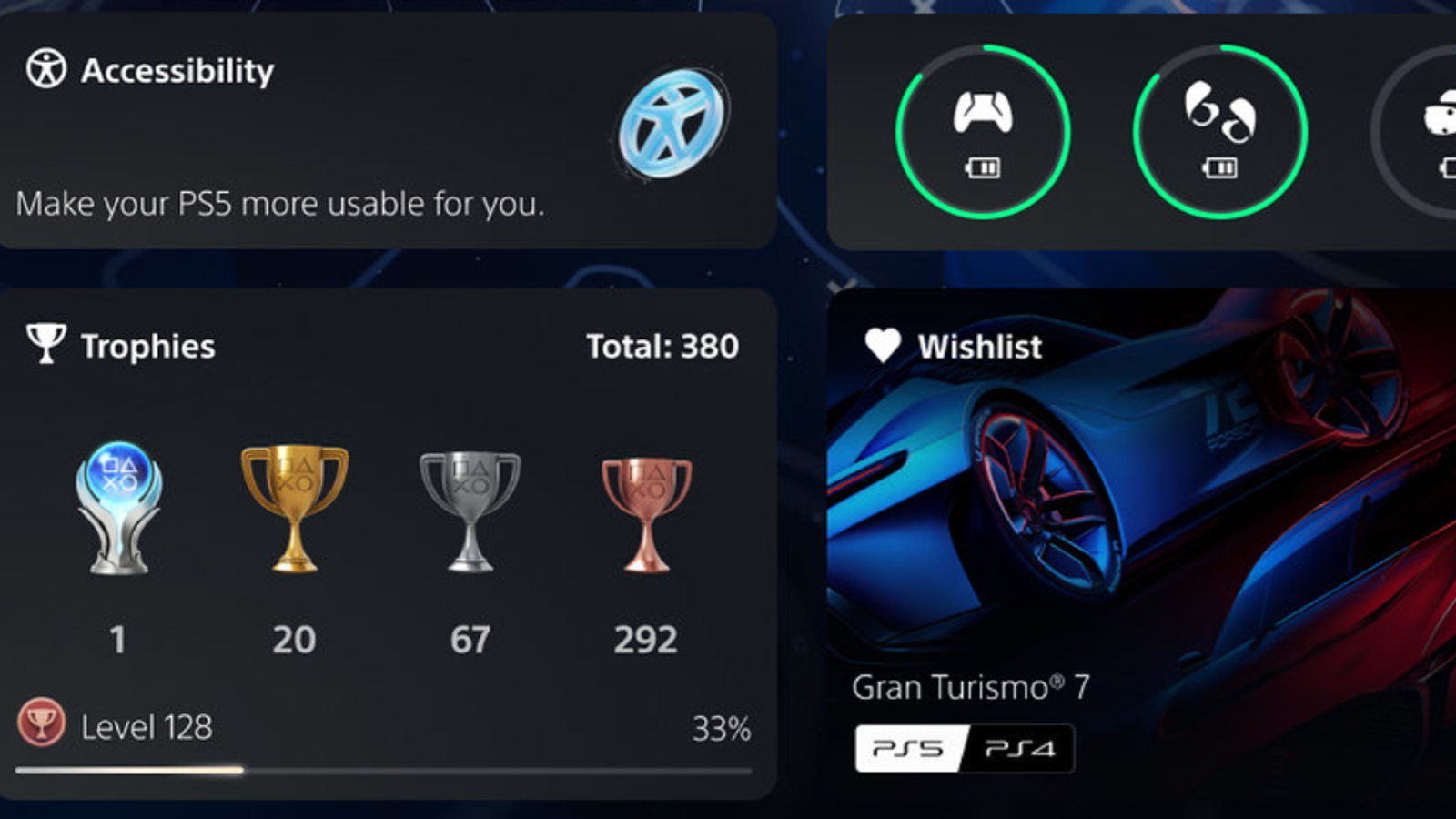 На PlayStation 5 появилась вкладка «Welcome» — на домашнем экране консоли можно будет разместить виджеты с информацией о параметрах устройства, вроде количество места на SSD-накопителе, данных о трофеях (достижениях) или уровня заряда геймпада.
