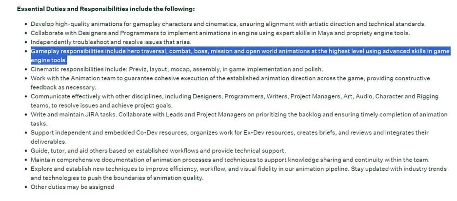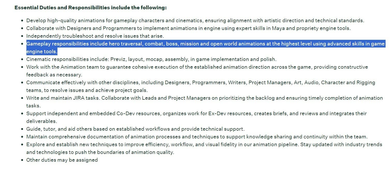 Insomniac Games недавно начала набирать сотрудников на различные должности. В вакансии старшего аниматора геймплея содержится просьба о наличии опыта в создании анимации передвижения героя, боя, боссов, миссий и открытого мира.