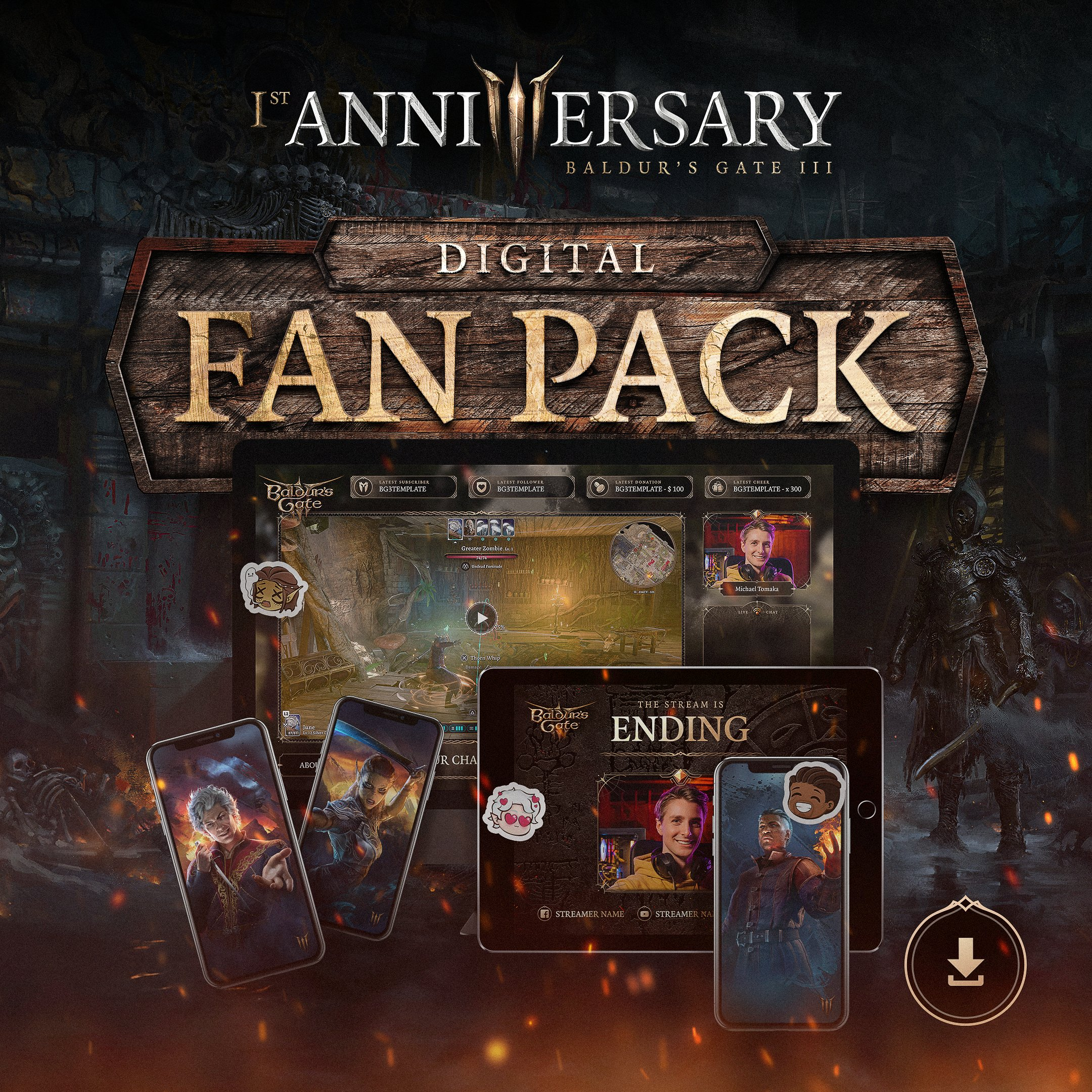 Разработчики предлагают комплект обоев, в подборку вошли Астарион, Карлах, Гейл, Вейл, Шэдоухарт и Лаэзель, а также Тëмный Соблазн и главный арт игры. Помимо этого, позаботились и о стримерах — с помощью оверлея они смогут сделать свои трансляции атмосфернее.