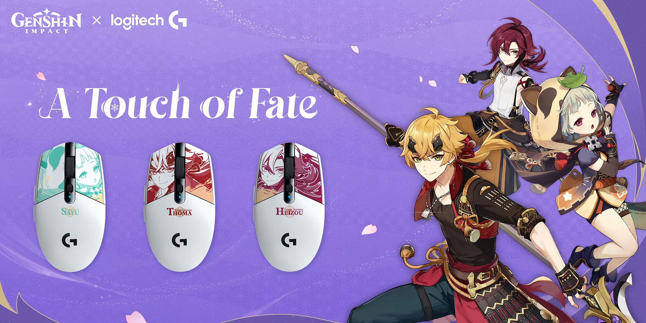 В тизере была лишь Камисато Аяка и её геймерская комната, но мерчем в стиле героини дело не ограничится. Оказалось, что в ходе коллаба Genshin Impact x Logitech также выпускают линейку продукции с другими персонажами игры miHoYo (HoYoverse). Например, Тома, Саю и Хэйдзо получат собственную мышку.