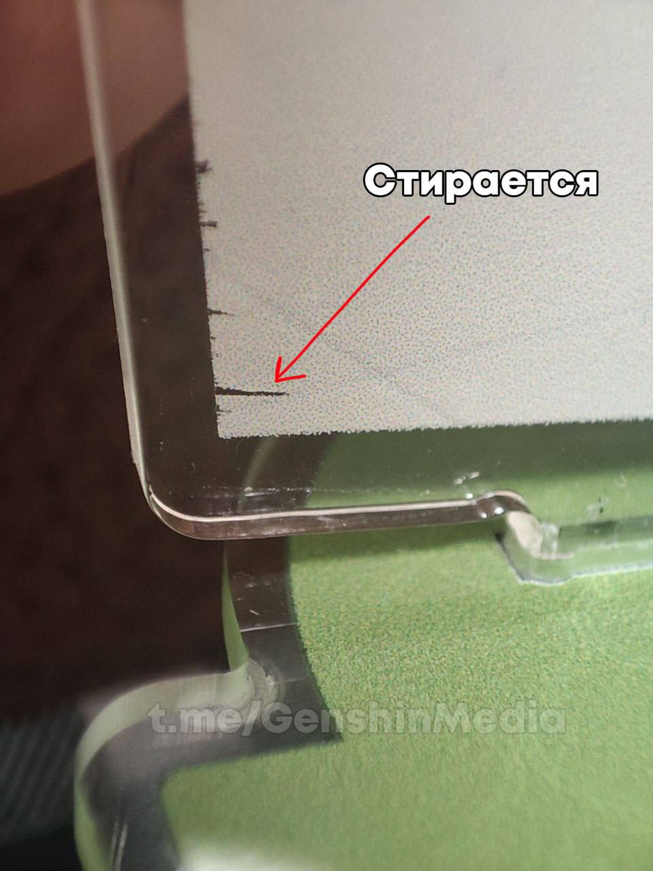 Принт у ХСР сделан на передней стороне и покрыт акриловым слоем, принт у [Genshin Impact x ДоДо Пицца] сделан на задней стороне и задняя сторона НИЧЕМ не защищена