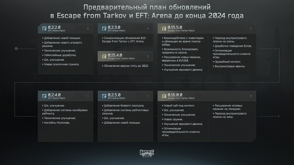 Создатели Escape from Tarkov и EFT Arena поделились ближайшими планами. Battlestate Games опубликовала дорожную карту обновлений двух проектов.