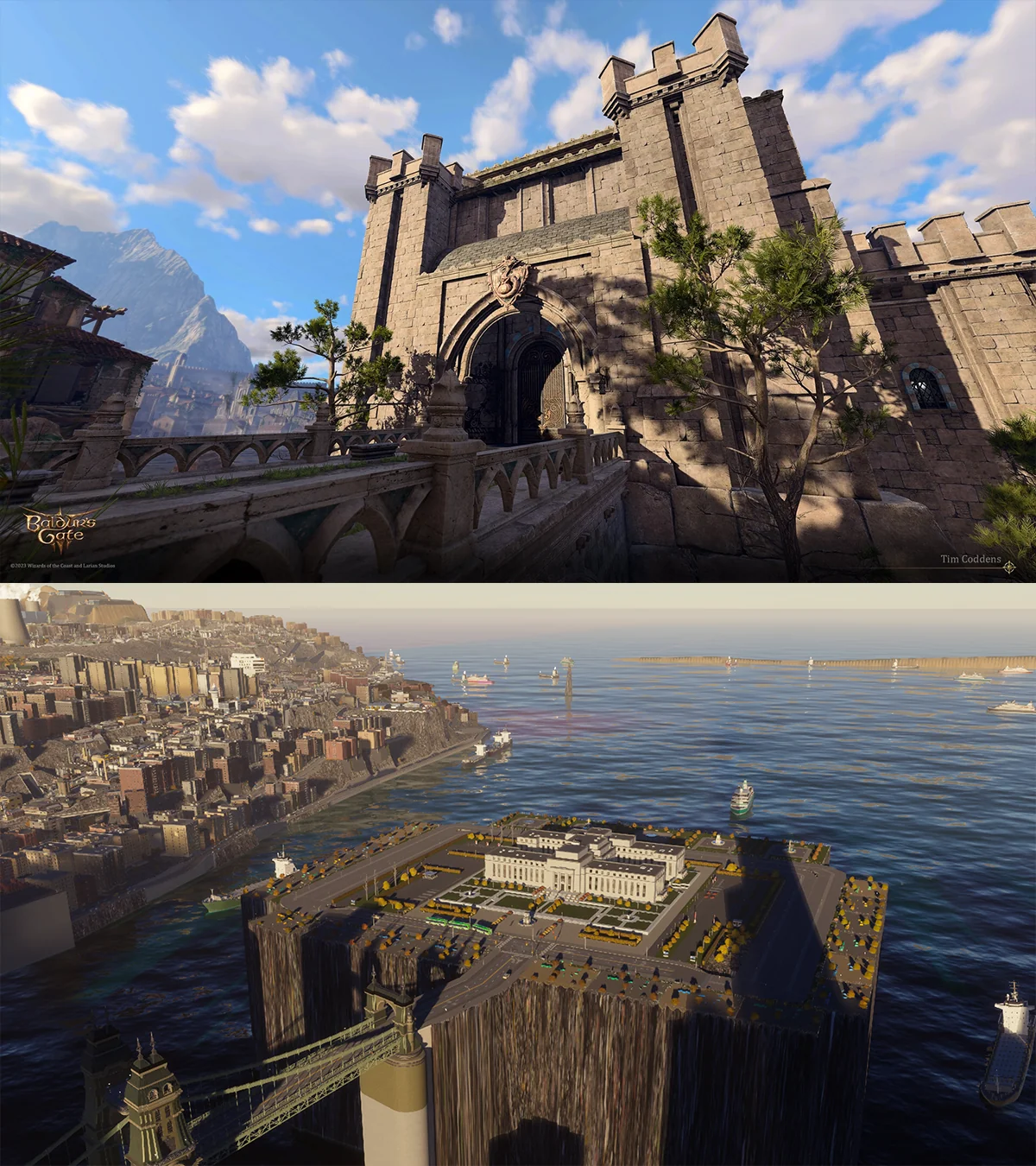 Тем не менее архитектурные образы из Baldur's Gate 3 зачастую легко угадываются — Impossible_Active271опубликовал несколько скриншотов и сравнил свою версию с игрой Larian:
