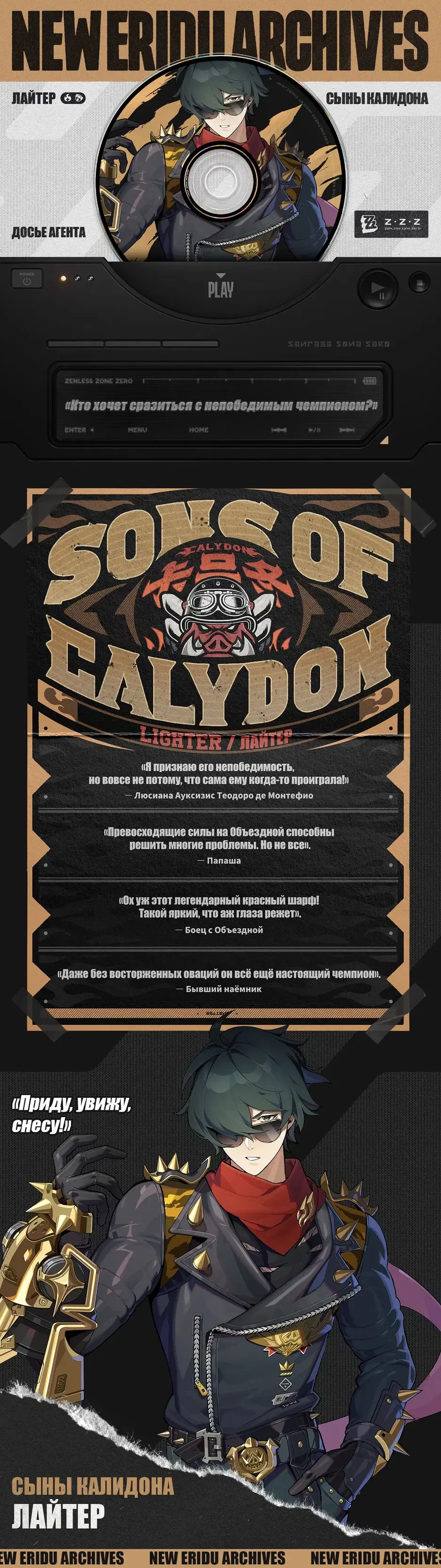 В центре внимания оказался Лайтер. Это персонаж S-ранга и тоже относится к фракции Сыны Калидона, как и Цезарь Кинг; у него специальность Нападение и атрибут Огненный.