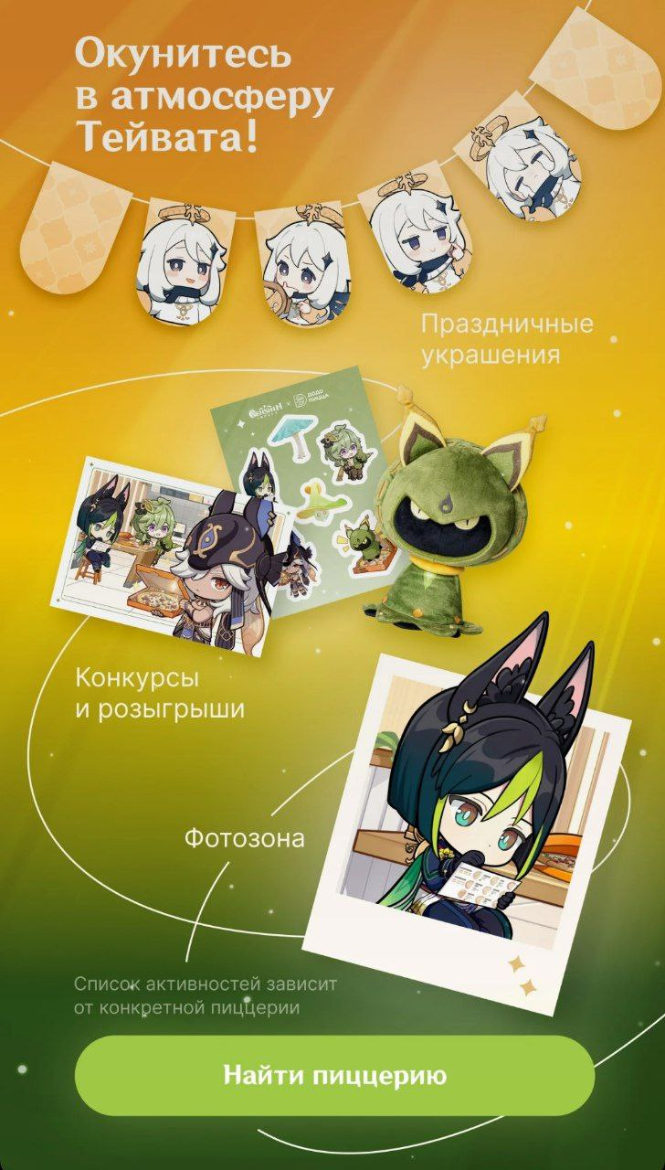Продолжается коллаб Genshin Impact и ДоДо Пицца в России и ряде других регионов. 28-29 сентябре в ряде заведений пройдут тематические дни, в ходе которых будут дополнительные подарки.
