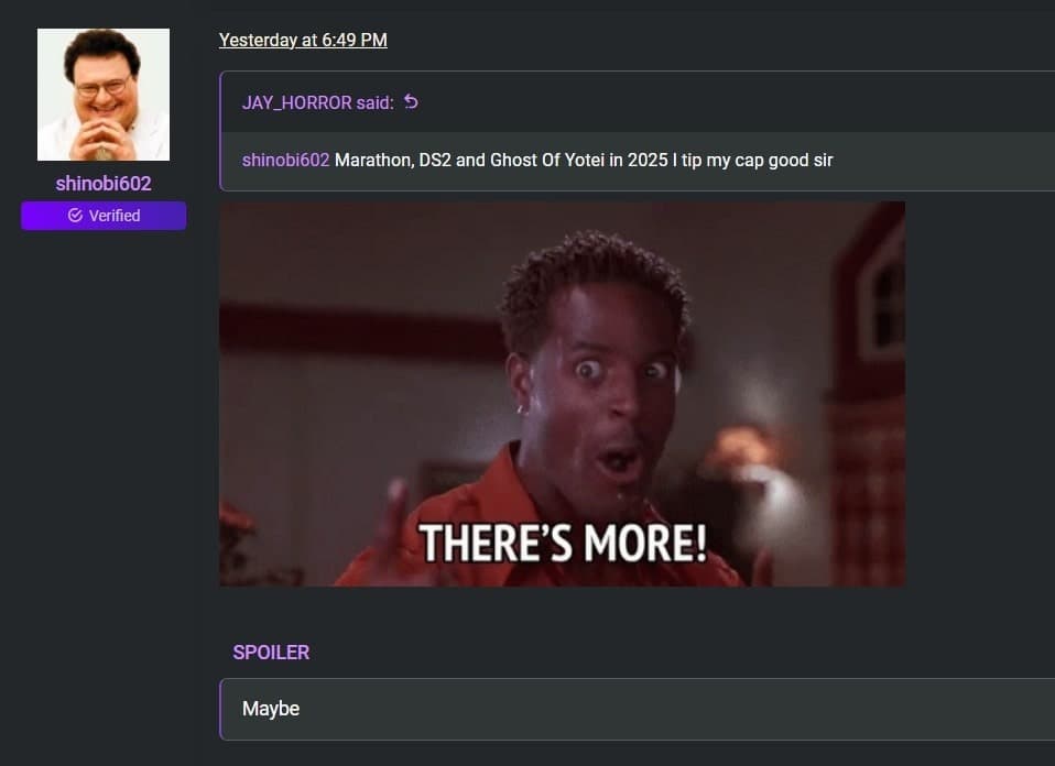 Фанаты начинают подозревать, что Sony готовит ещё одну большую презентацию, на которой покажут неанонсированные игры. Хотя точные детали остаются загадкой, комментарий Shinobi602 намекает, что следующий год может стать одним из лучших в истории пользователей PS5. А как будет на самом деле неизвестно, так как Sony ещё официально не подтвердила дополнительных проектов на 2025 год.