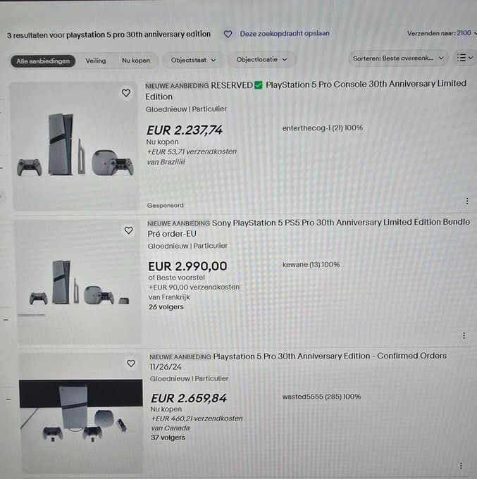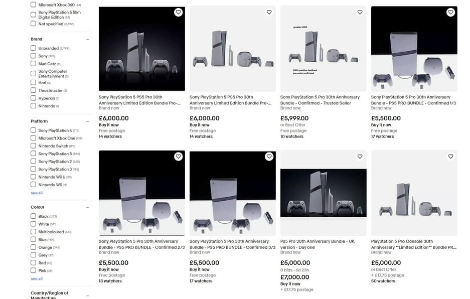 Стоимость набора (PS5 Pro, PS Portal, DualSense Egde и зарядное устройство) в Великобритании составила 960 фунтов стерлингов (около 1300 долларов). Некоторые из тех, кто получил подтверждение о предзаказе, уже разместили предложение, цена которого достигает 5000 фунтов стерлингов (около 6700 долларов). Есть более дешёвые и безумно дорогие варианты, достигающие 10 000.