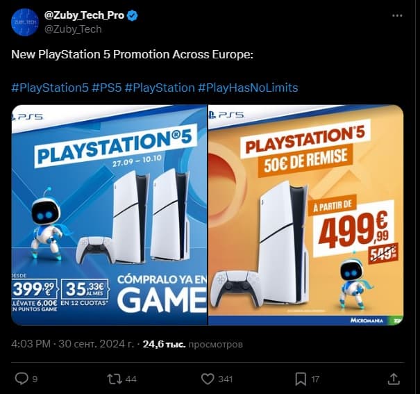 Ещё до выхода PS5 Pro компания Sony решила предоставить на PS5 скидку в некоторых европейских странах.