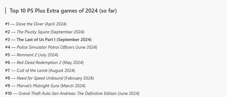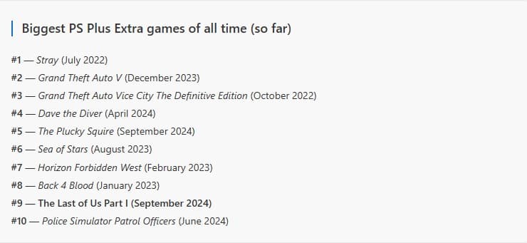 Это третий лучший запуск PS Plus Extra в текущем году и девятый лучший релиз за всю двухлетнюю историю PlayStation Plus Extra.