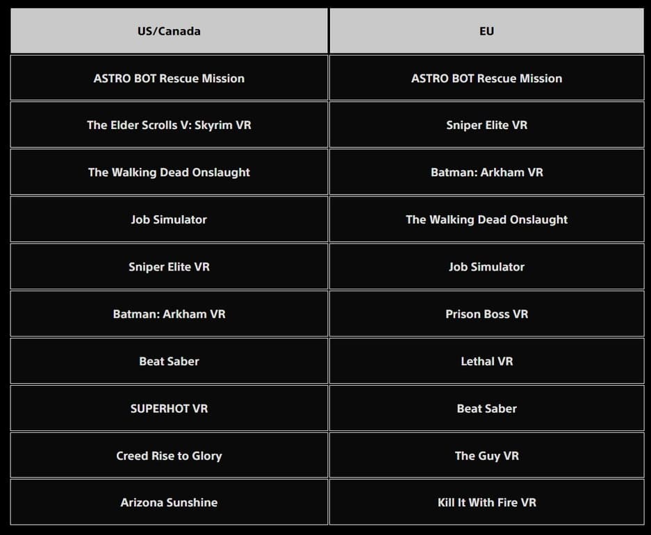 Игры PS VR: