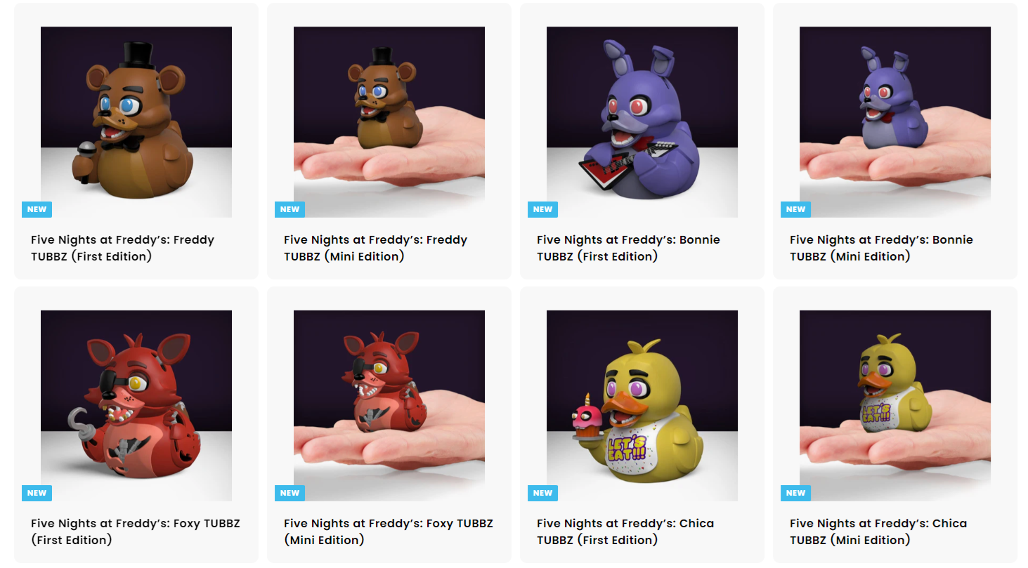 Теперь отметилась Numskull Designs — показали официальную коллекцию уточек Tubbz для ванной, выполненных в стиле известных аниматроников из вселенной Five Nights at Freddy's.