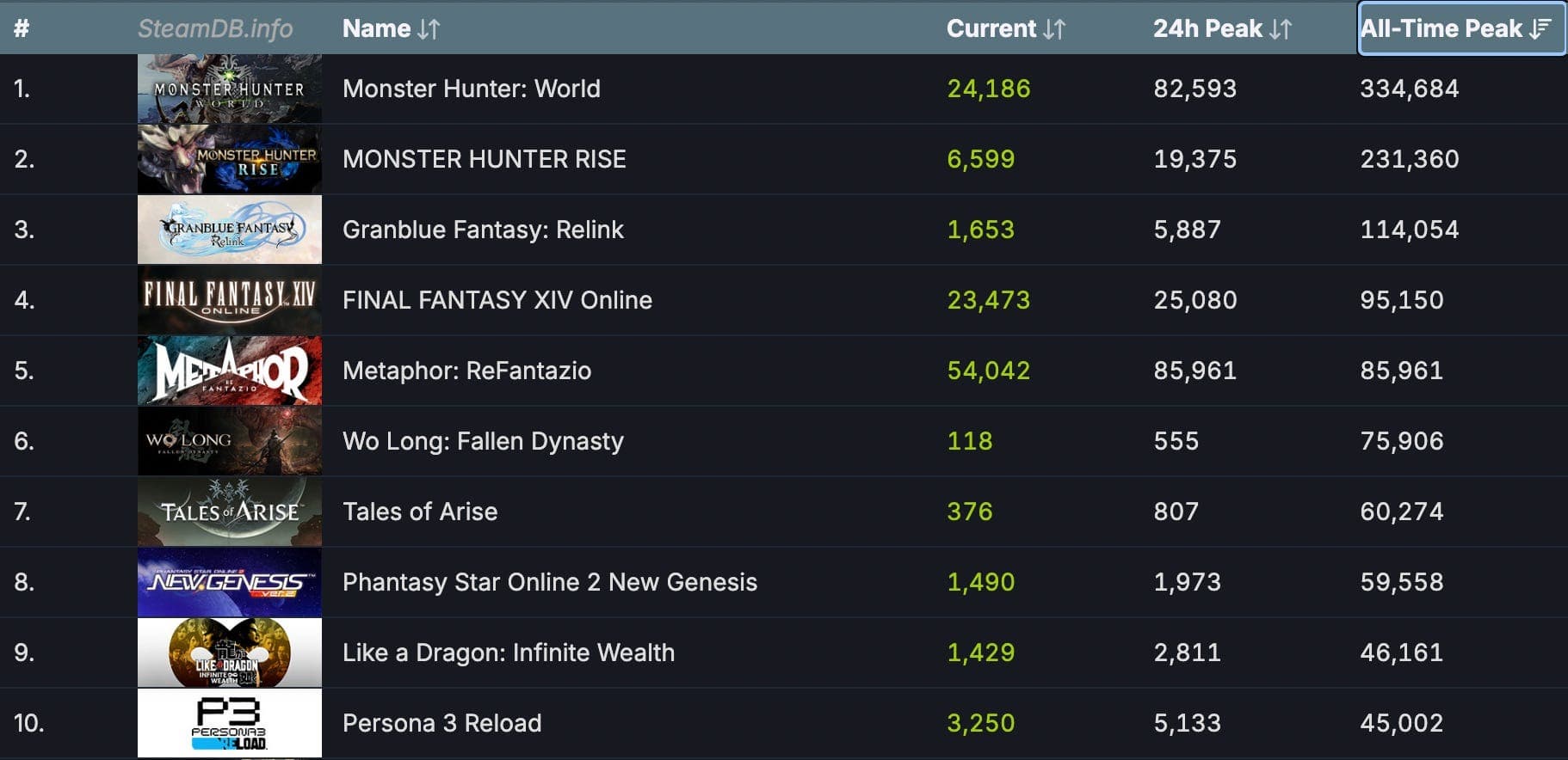 Только MMORPG Final Fantasy 14, Granblue Fantasy: Relink (включает возможность кооперативной игры), Monster Hunter Rise и Monster Hunter World (две больших боевик ролевых игры с кооперативом) превзошли Metaphor: ReFantazio, исключительно однопользовательскую игру от Atlus.